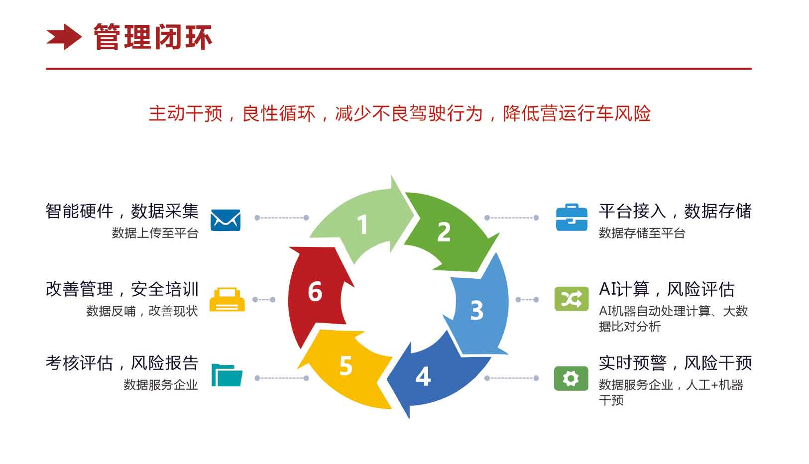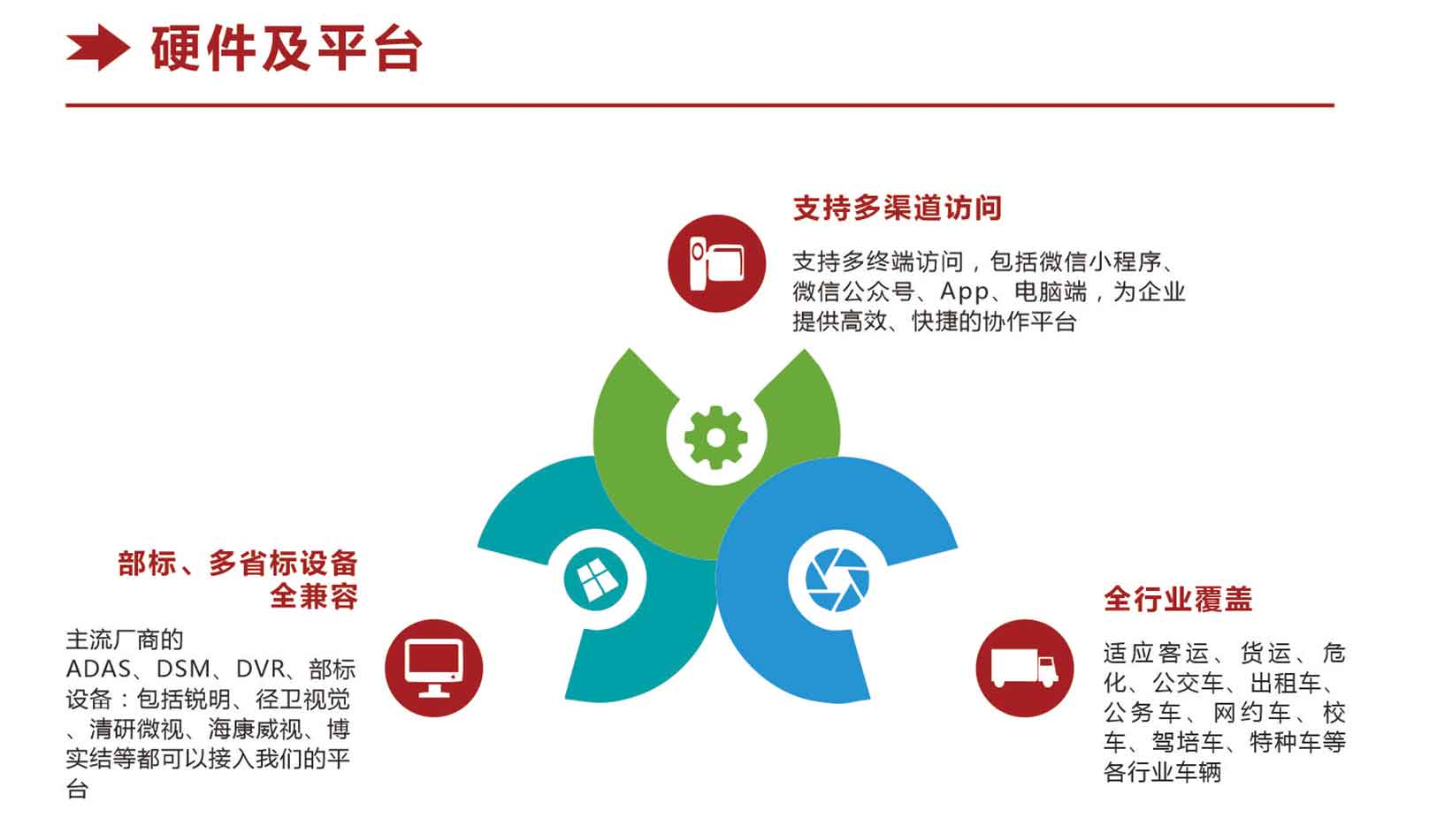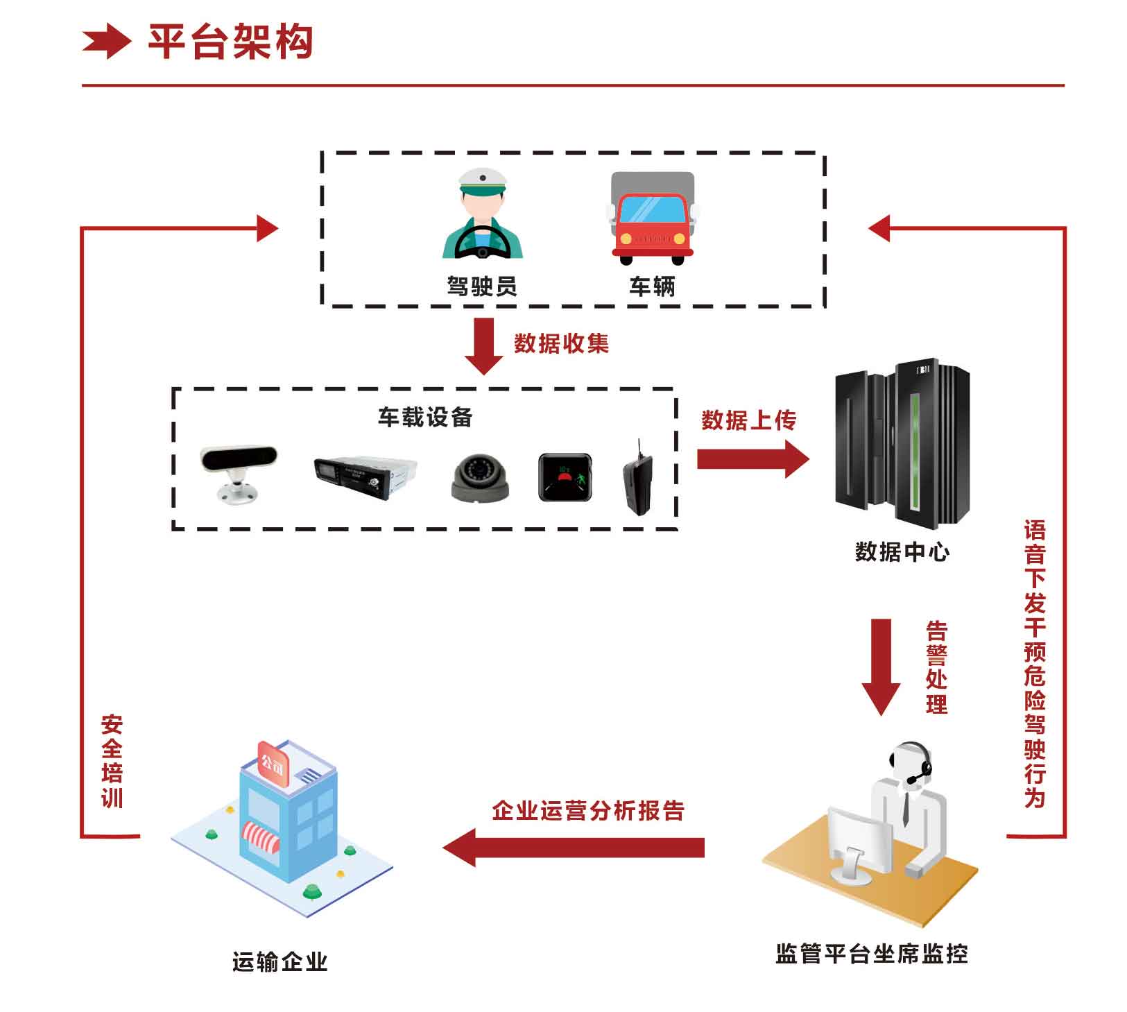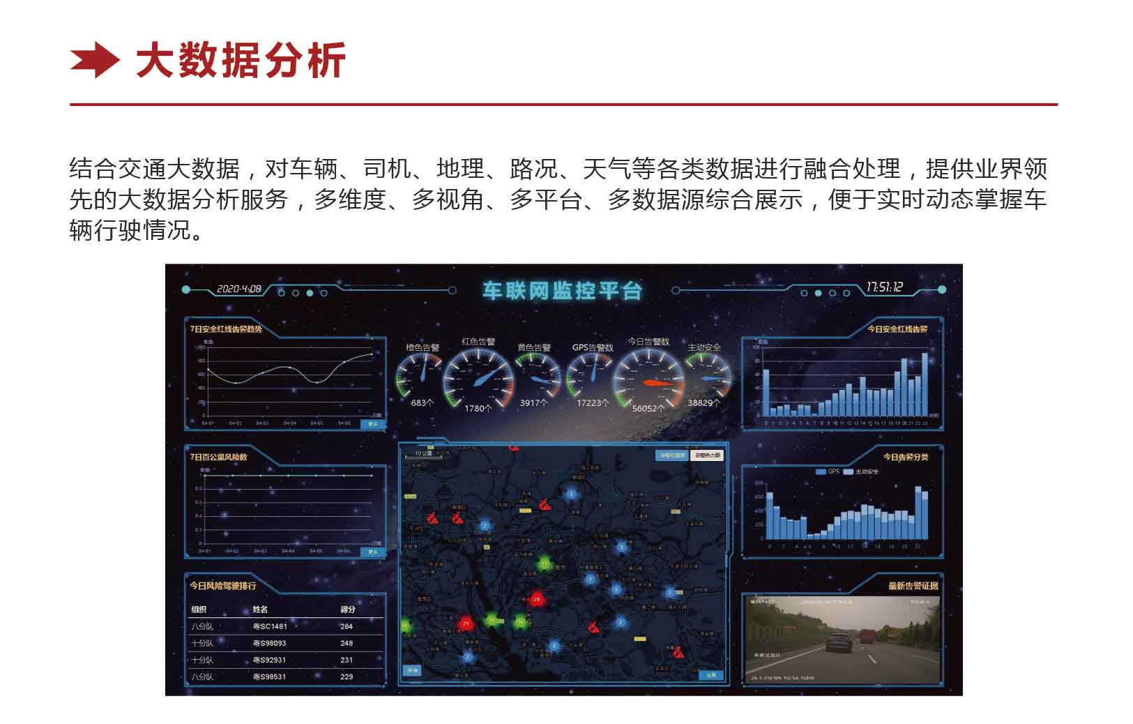 ADAS和DMS智能视频监控 + GPS定位 + 视频录像 + 安全驾驶培训 + 大数据分析 + 第三方监管